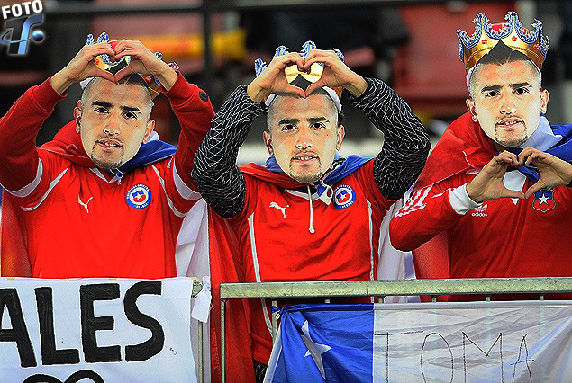 Hinchas chilenos con las caretas con el rostro de Arturo Vidal.