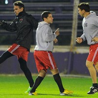 El plantel realizó un movimiento básicamente recreativo este martes por la noche, en la propia cancha del estadio Franzini, que sirvió como reconocimiento de campo de juego e iluminación y quedó pronto para el histórico estreno continental.