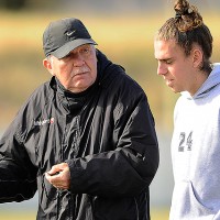 El Dr. Raúl Möller a la cancha en El Tanque Sisley. El viernes tomó el mando del plantel, en el Estadio Dr. Víctor Della Valle, en una nueva etapa. En la imagen, de conversación con Danilo Asconeguy. El delantero Alvaro Mello se acerca a Almirante Brown, club que milita en la B Nacional de Argentina.