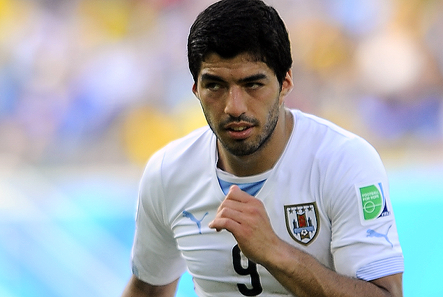 Luis Suárez en el partido con Italia cuando se produjo el “mordiscón” que derivó en la sanción de FIFA..