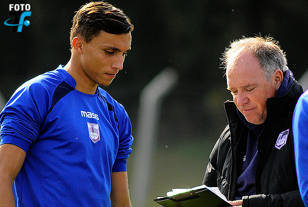 Mathías Suárez, lateral izquierdo y Alejandro Acevedo, entrenador asistente, en el violeta.