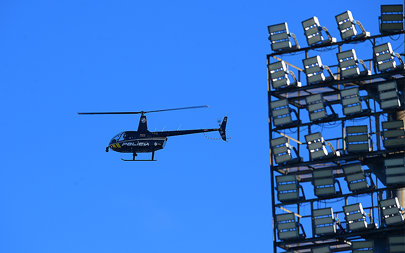 El helicóptero policial sobrevuela el Estadio Centenario.