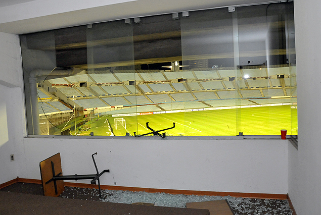 INSOLITO: Los hinchas de Vélez rompieron los vidrios de la zona de Palcos en la Tribuna América contra la Colombes. Entraron y robaron un televisor. Increíble episodio. La policía solicitó refuerzos para frenar un hecho increíble. El Estadio Centenario, Monumento Histórico al fútbol mundial, desprotegido.