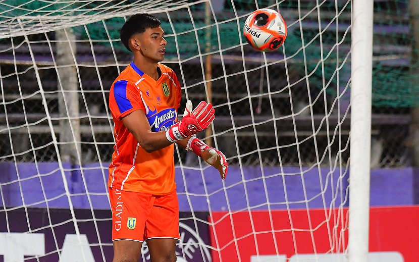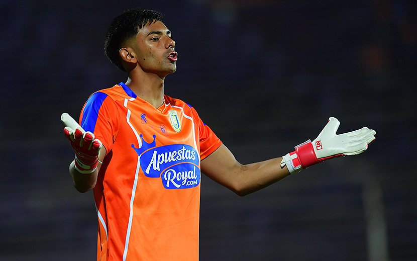 El arquero uruguayo Santiago Silva, contiene el penal rematado por Ignacio Gonella de Central Español.