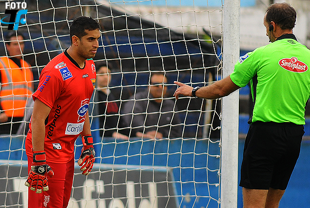 Fedorczuk le hace una observación a Rolero, previo al gol deIgnacio Ramírez de penal para Liverpool