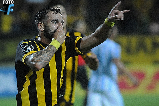 Primero… Rodrigo Rojo, bautismo de gol con la camiseta de Peñarol. El lateral de 28 años se sumó en la presente temporada y se dio el gusto de convertir por primera vez en Copa Libertadores.