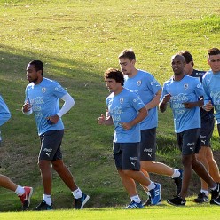 Lunes de partida de los trabajos en el Complejo Celeste. Ocho jugadores se pusieron a la orden del cuerpo técnico: Sebastián Coates, José María Giménez, Diego Rolan, Alvaro “Palito” Pereira, Mathías Corujo, Jorge Fucile, Guzmán Pereira y Cristian Rodríguez.