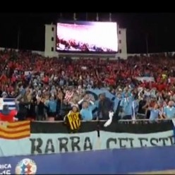 Hinchas uruguayos en el Estadio Nacional de Santiago.