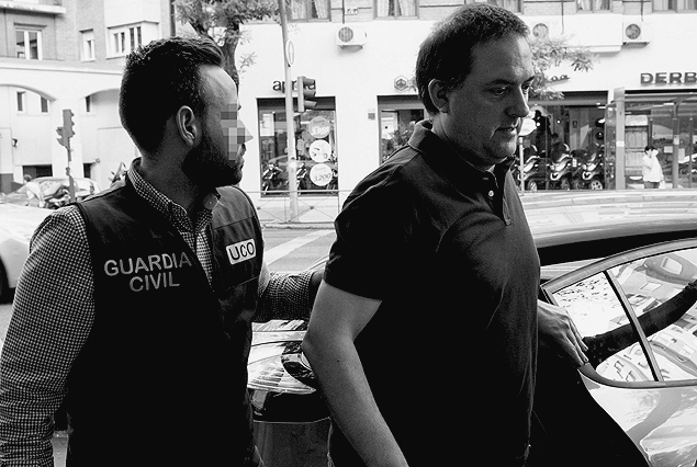 Gorka Villar es conducido por un agente policial español a la prisión.