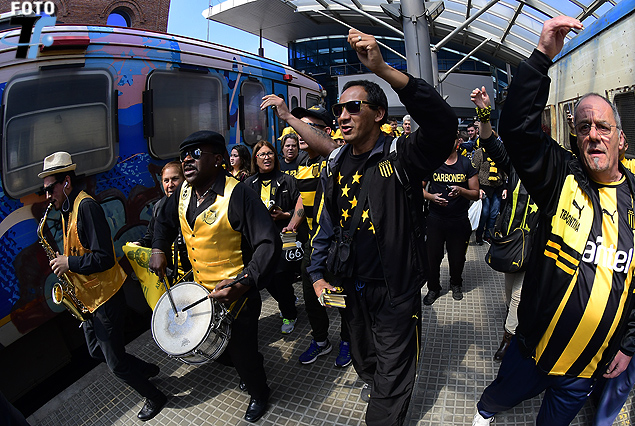 La alegría de los hinchas aurinegros en el festejo desde la Estación de AFE rumbo al pueblo Peñarol.