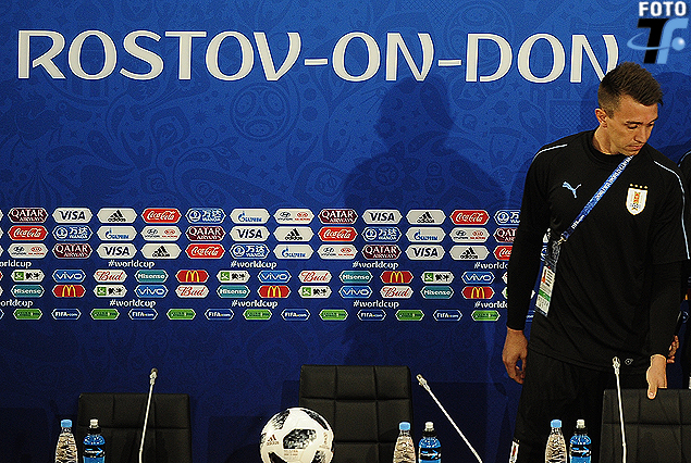 Fernando Muslera en la sala de prensa del Estadio Rostov Arena.