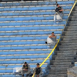 Los policias que ya se instalaron en la Tribuna Olímpica.