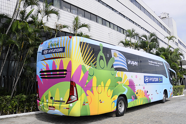 La delegación de Uruguay tiene un ómnibus cuya marca, diseño y pintura es el mismo en todas las ciudades donde jugará en este Grupo D. Es decir, al llegar a Belo Horizonte, donde está el cuartel general, tiene un ómnibus. Al llegar ayer, jueves, a Fortaleza, los esperaba otro ómnibus igual, pero diferente… ¿Por qué? Porque era de Fortaleza, matrícula OIQ-6243. Como el bus está a la orden de los celestes, el mismo se encuentra ahora estacionado en la parte posterior del Hotel Marina Park, a metros del mar, aguardando la salida para cumplir las actividades del día de hoy y mañana. Las mismas son las siguientes, según lo informado por el Jefe de Prensa de la Selección, Matías Faral: