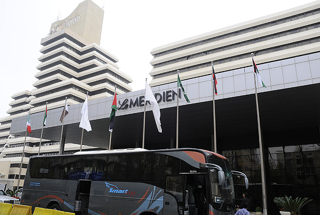 Fotografía exclusiva de la enorme portada del Hotel Le Meridien de Ammán donde se alojará la Delegación de Uruguay.
