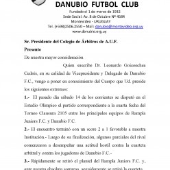 EXCLUSIVO: LA NOTA DE DANUBIO A LA COMISIÓN DE ÁRBITROS Y “EL PREMATURO RETIRO DE LA CUARTETA”