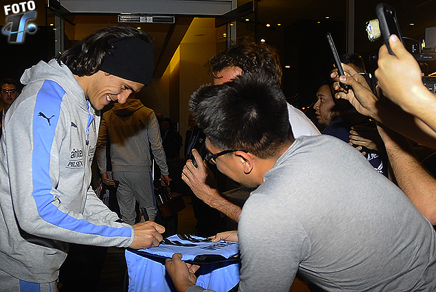 Edinson Cavani firmó autógrafos en el arribo de la Selección a Phoenix.