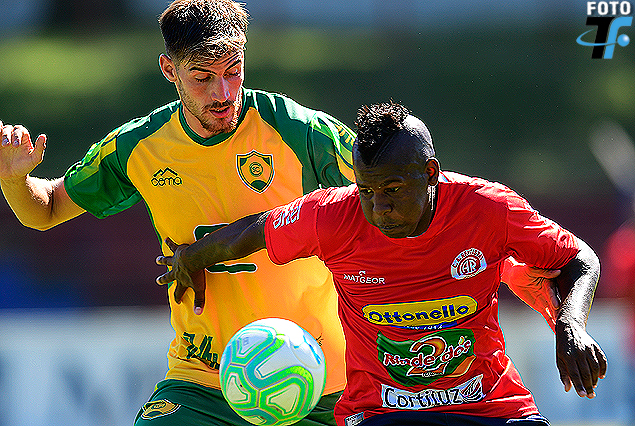 Gerónimo D’ Oliveira (Cerrito) en la marca a Federico Pintos (Rentistas).
