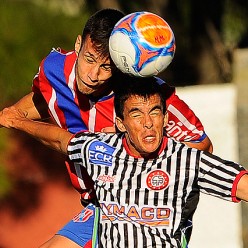 El zaguero palermitano despeja de cabeza, superando el esfuerzo ofensivo de Federico Ramos.