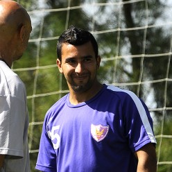 Rosario Martínez en plena charla con Jorge Zambrana. El DT aguarda la evolución del volante.