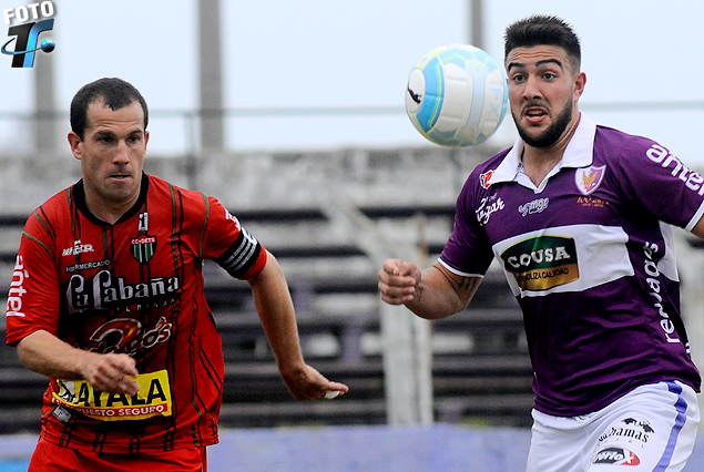 Juan Pablo Péndiola (El Tanque) y Lucas Cavallini (Fénix) pelean por la pelota.