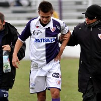 Gonzalo Papa en el momento de abandonar la cancha ante Cerro Largo.