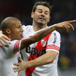 El abrazo de los uruguayos Carlos Sánchez y Rodrigo Mora en el gran triunfo de River Plate 3:0 a Cruzeiro. FOTO EFE
