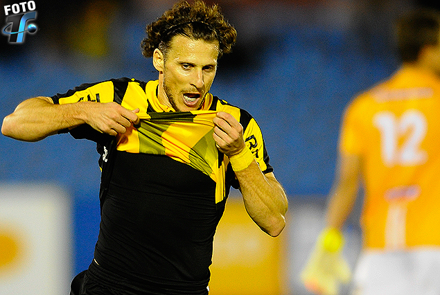 Diego Forlán en el festejo del tercer gol carbonero.