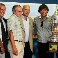Aldo Goia por la AUF, entrega a Luis González de Danubio, el trofeo obtenido por conquistar la tabla anual de todas las categorías de divisiones formativas.
