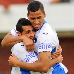 Gonzalo Freitas, la gran figura, y el abrazo con Gonzalo Sena.