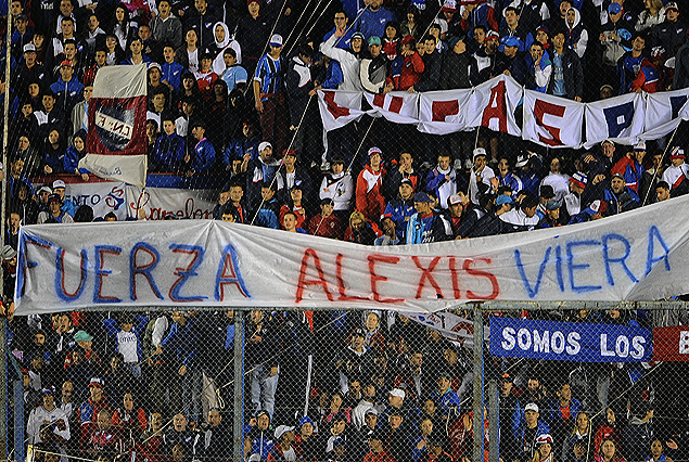 Pulpo… “Fuerza Alexis Viera”, la bandera que apareció en apoyo del ex arquero tricolor en la popular Porte. Muy bien por los muchachos de LBDP. Votos de todo el fútbol uruguayo por un rápido restablecimiento del “Pulpo” que se encuentra internado en estado delicado en un hospital de Cali tras recibir dos impactos de bala en la puerta de su domicilio.
