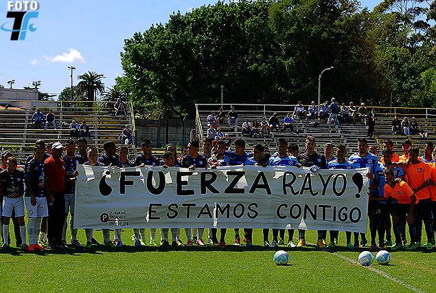 Pancarta: En apoyo a Rodrigo Alaniz, futbolista de Torque, oriundo de Cerro Largo, a quien operaron de un tumor en un téstículo y se está recuperando. El tumor no lo tiene más y está en su casa, a estudios de un urólogo. los jugadores de ambos equipos ingresaron al campo de juego con una pancarta: “¡Fuerza Rayo!/estamos contigo”.
