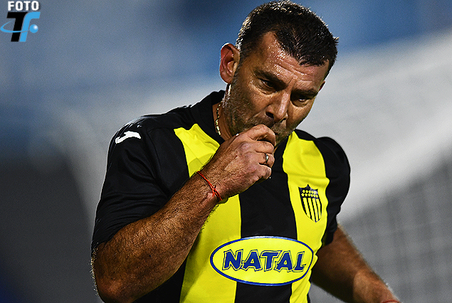 Gabriel Cedrés y el beso de gol en el festejo del segundo aurinegro.
