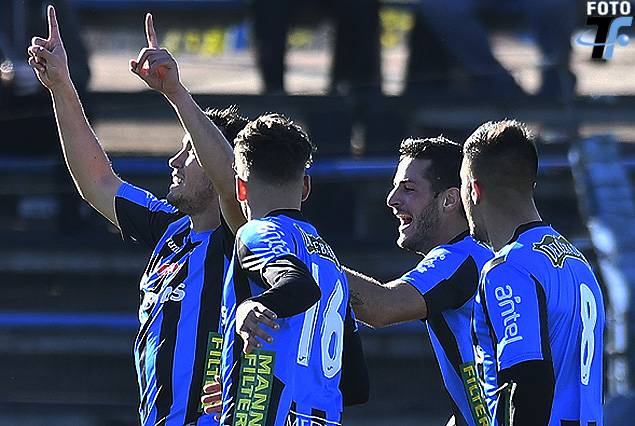 Angelo Gabrielli en el festejo del golazo para la alegría de los negriazules en Belvedere.