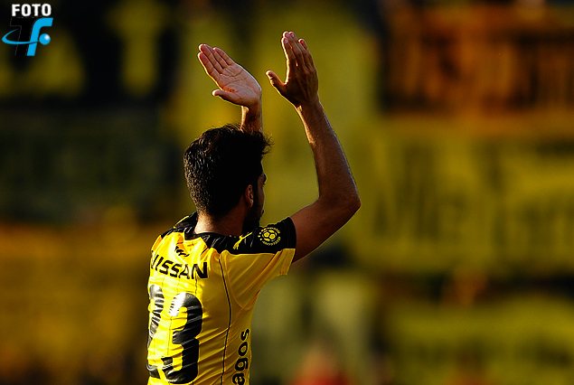 Gastón Rodríguez retribuye con aplausos la ovación que recibió de los parciales aurinegros.