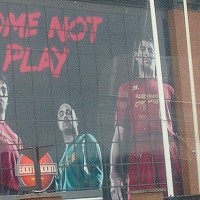 Luis Suárez y Steven Gerrad, con la camiseta del Liverpool, en la marquesina principal del estadio Anfield Road.