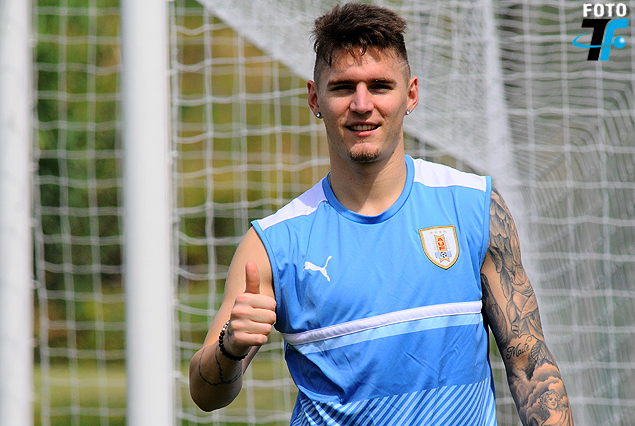 Guillermo Varela estuvo en el Complejo Celeste entrenado para mantenerse en forma, durante sus vacaciones en Uruguay.