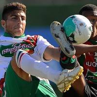 Giovanni Zarfino va con todo a una pelota dividida. Fue figura en la victoria de Boston River.