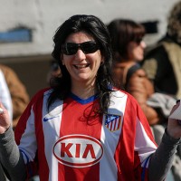 Los jugadores del Aleti en la cancha, realizan los ejercicios precompetitivos en la cancha, sobre el arco de la tribuna Amsterdam. Sobresalen “Cebolla”, Diego Godín y el arquero belga Courtois por sus casi dos metros de estatura. Todos los jugadores lucen equipos de abrigo rojos.