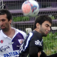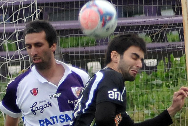Ignacio Pallas y Rodrigo Pastorini van en busca del balón que sigue de largo.