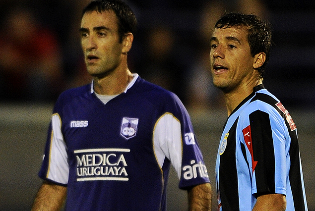 PRESENCIA… Gregorio Pérez, campeón uruguayo en 1977 con Defensor Sporting como jugador y Enrique De Los Santos estuvieron juntos mirando el partido. Quienes también se vieron en las tribunas fueron la ministra de Turismo y Deporte, Liliam Kechichián, y Pablo Javier Bengoechea.