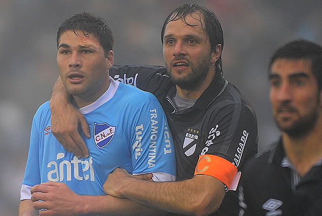 Saludos… Gonzalo Porras, volante de Nacional, uno por uno saludó a todos los jugadores de Danubio, hoy rivales, ayer compañeros en el último campeón uruguayo.