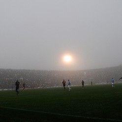 Niebla… Tarde gris, lluviosa y con niebla, mucha niebla… ¿Montevideo o Londres..? La espesa bruma tapó por completo las cuatro torres de iluminación que fueron encendidas a pleno ya que desde las tribunas se veía poco y nada hacia el campo de juego.