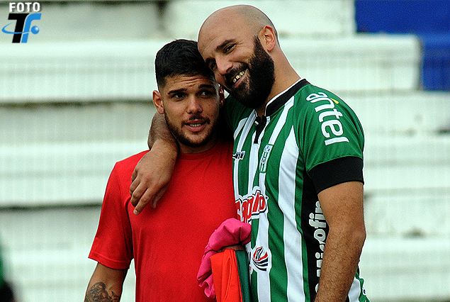 RIVALES Y AMIGOS: Agustín Gutiérrez jugó años atrás en Racing y fue compañero de Pablo Lacoste. Hoy fueron rivales. Gutiérrez a la orden de Boston River y Lacoste en el equipo albiverde. Se volvieron a reencontrar en el Parque Artigas de Las Piedras.