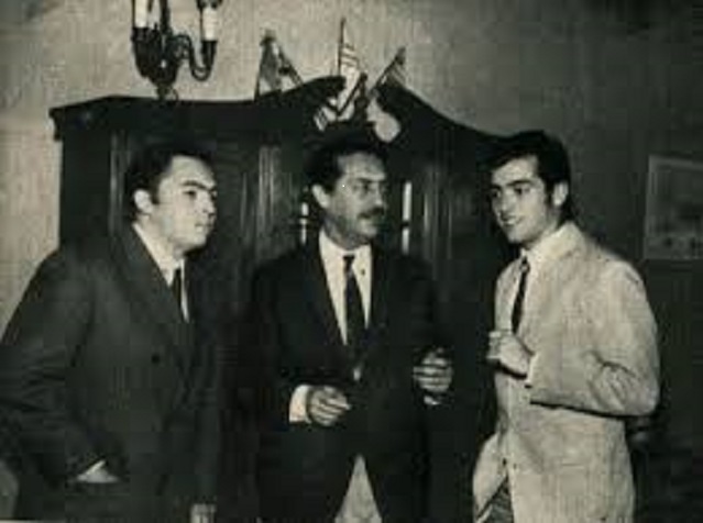 Carlos Gabriel Solé, Jorge Bazzani y el autor de la nota, captados en noviembre de 1968, durante una producción publicitaria que apareció en la revista “Cine, radio, actualidad”.