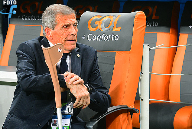 Oscar Washington Tabárez, seleccionador uruguayo, en conferencia en la sala de prensa del Estadio Arena Do Gremio de Porto Alegre…