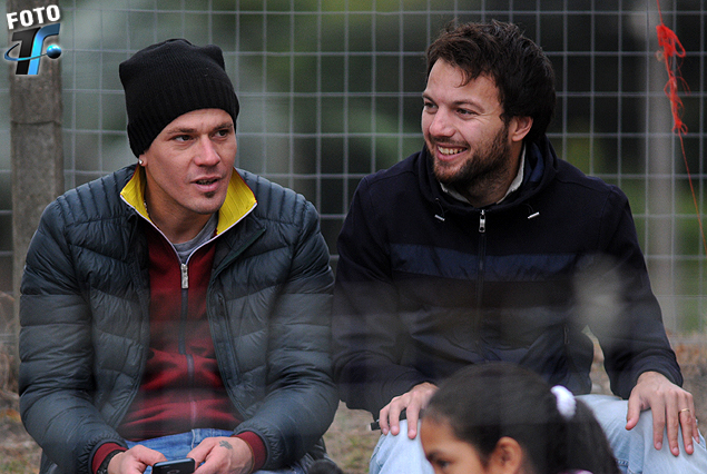 Herrera y Leguizamón: Los futbolistas riverplatenses Claudio Herrera y Mario Leguizamón en la platea darsenera.