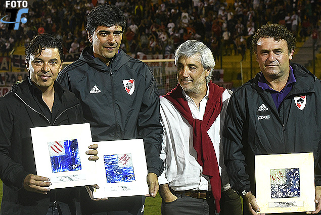 Muñeco… Marcelo Gallardo, Matías Biscay, Hernán Buján y el profesor Marcelo Tulbovitz, el cuerpo técnico campeón de América, fue homenajeado por la dirigencia de Nacional. Los cuatro profesionales con pasado tricolor recibieron sendas plaquetas y el grito de “Muñeco, Muñeco…”, en reconocimiento al ganador entrenador argentino, se hizo sentir fuerte en las cuatro tribunas. Marcelo Gallardo, fue Campeón Uruguayo con Nacional, como futbolista -2010/11- y en su debut como DT -2011/12-.
