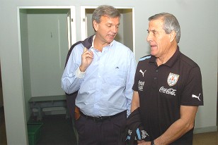 ¡Buena onda! El Dr. Bauzá y Tabárez al llegar a La Paz este mediodía.