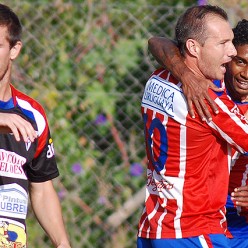 El colombiano César Taján, festeja su primer gol con la camiseta de Central Español.