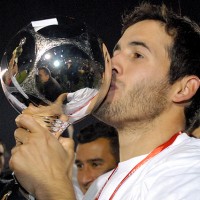 Camilo Mayada besa la copa.